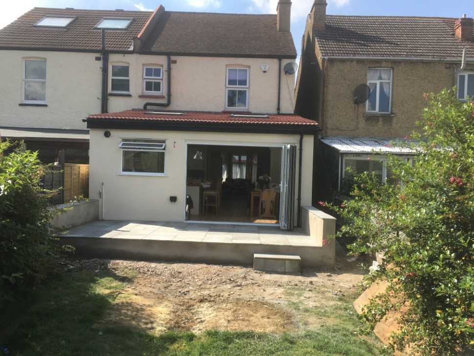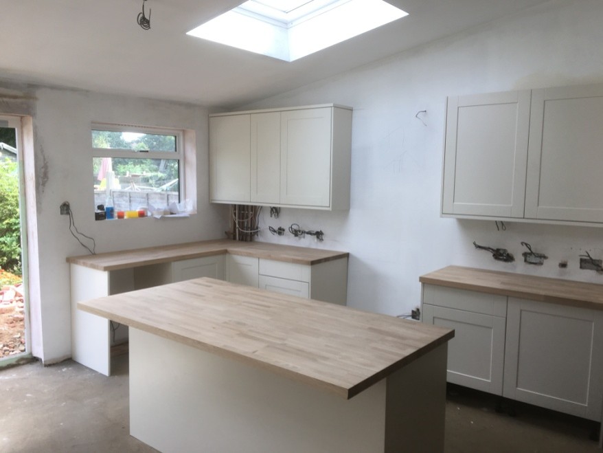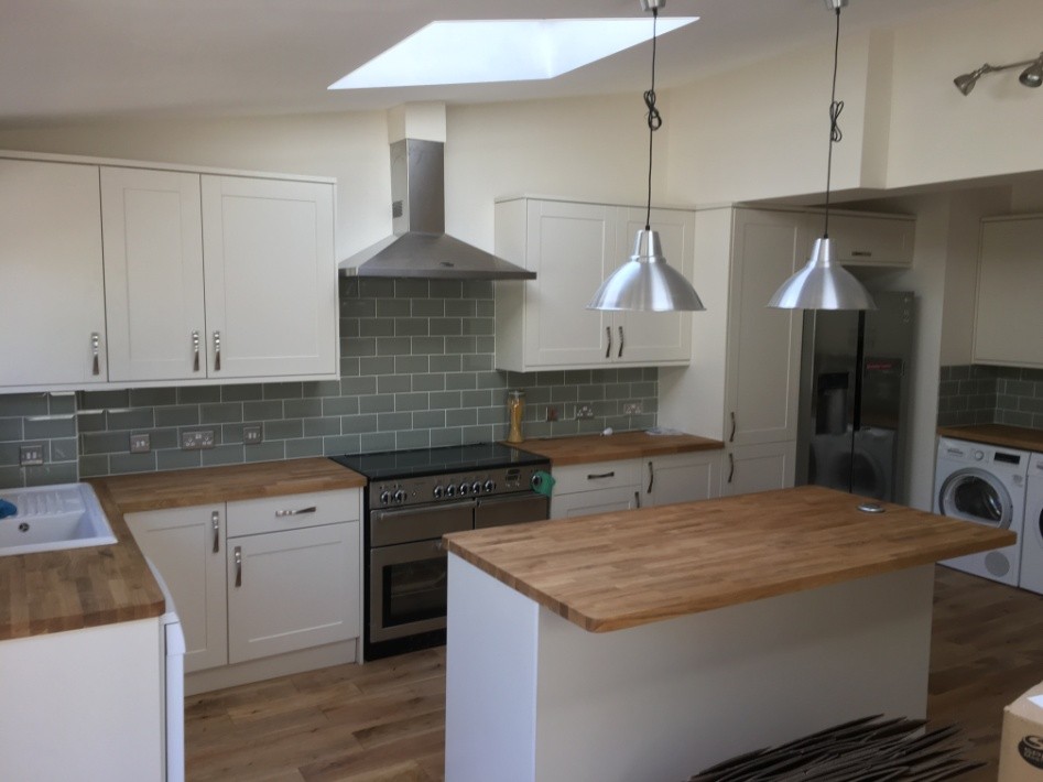 A rear extension including new kitchen and two roof lights to a semi-detached home. Work also included a new patio to the rear. Windows and doors supplied and installed by our trusted supplier, Roberts Windows.